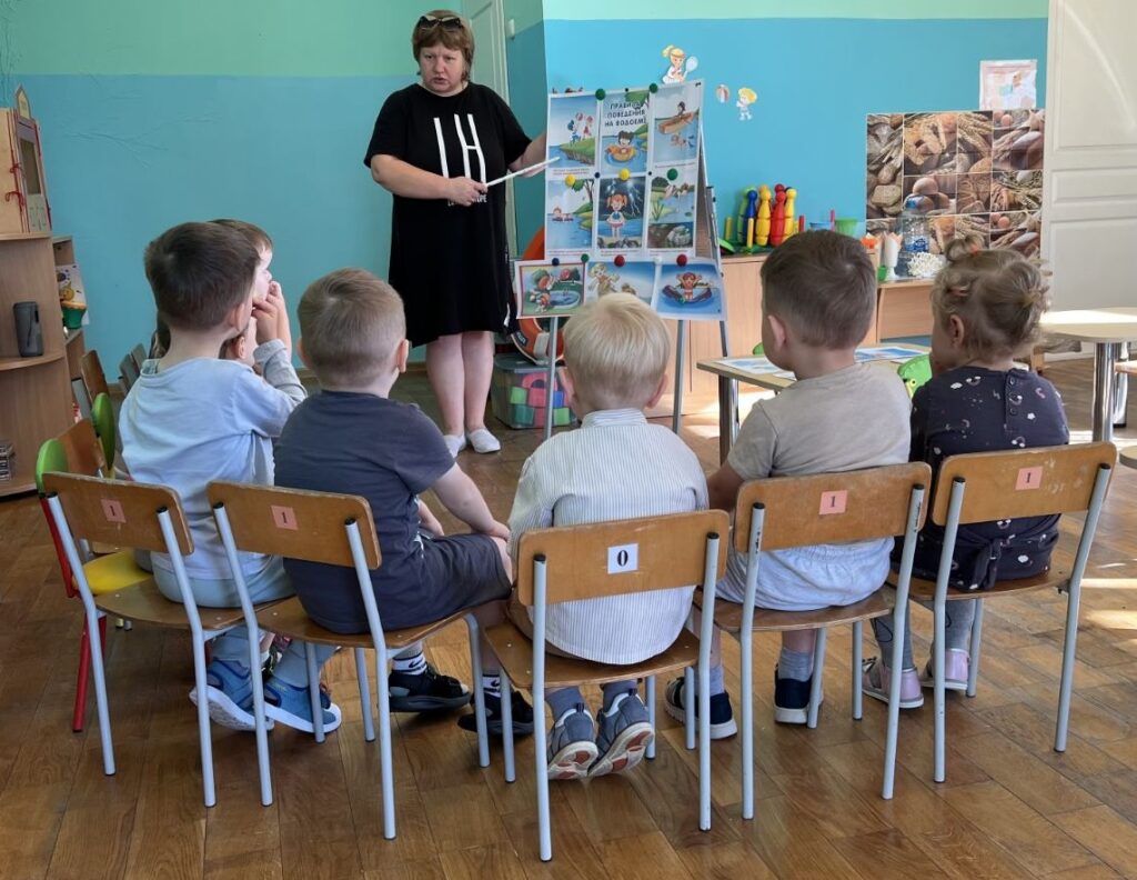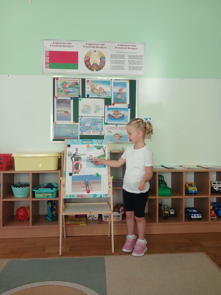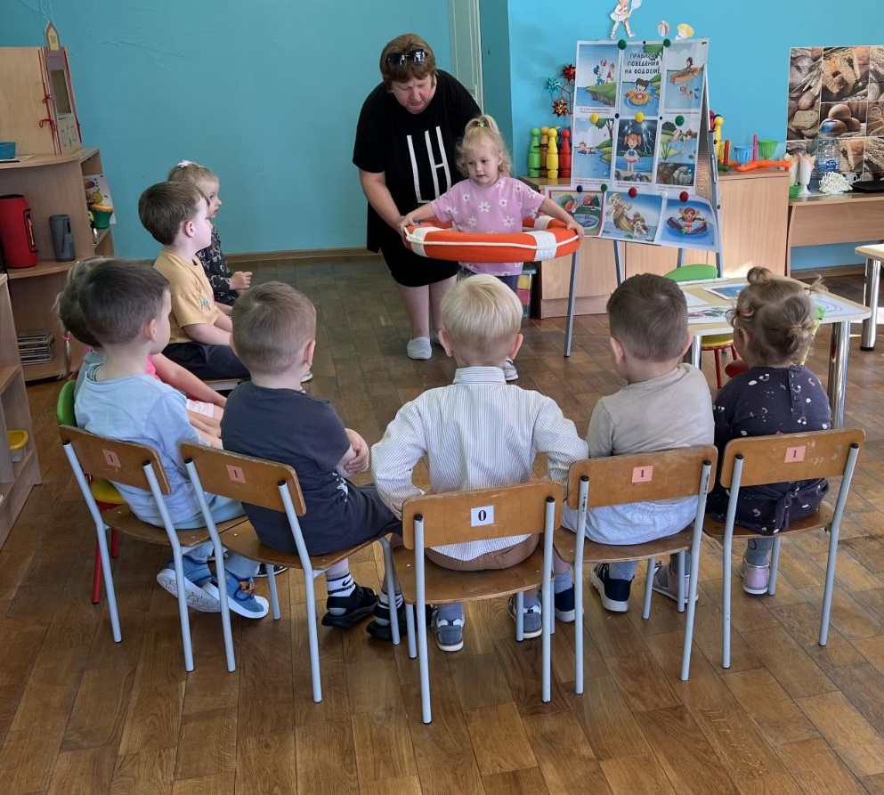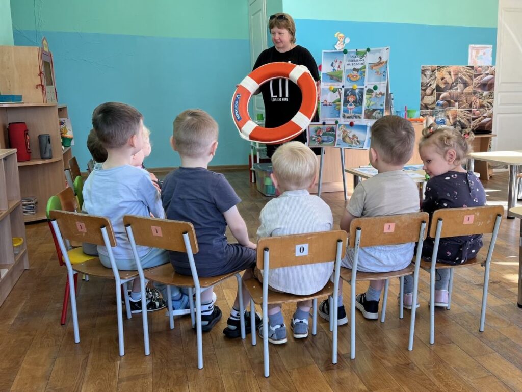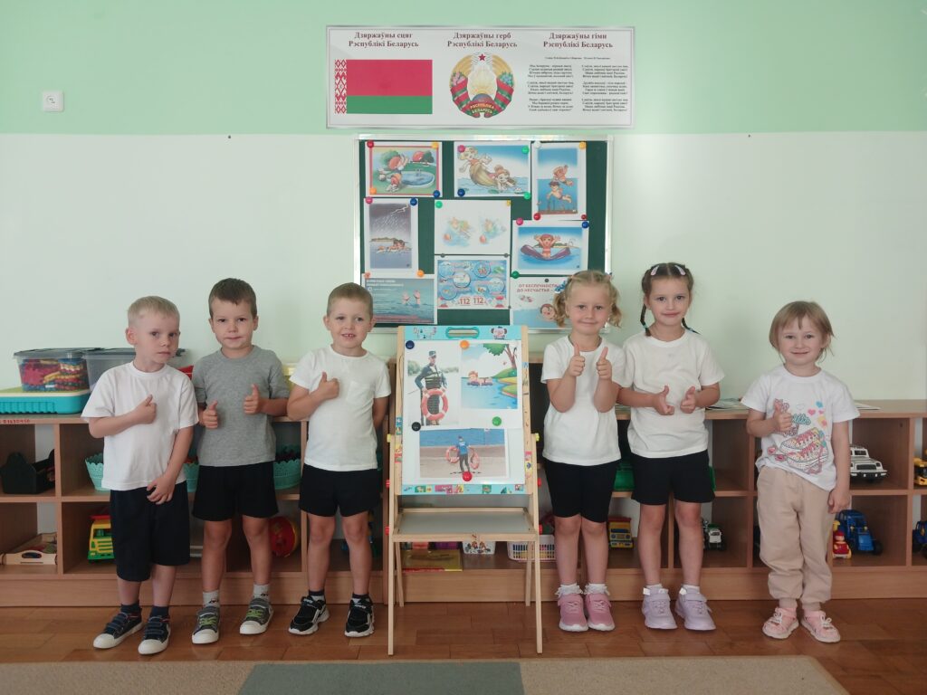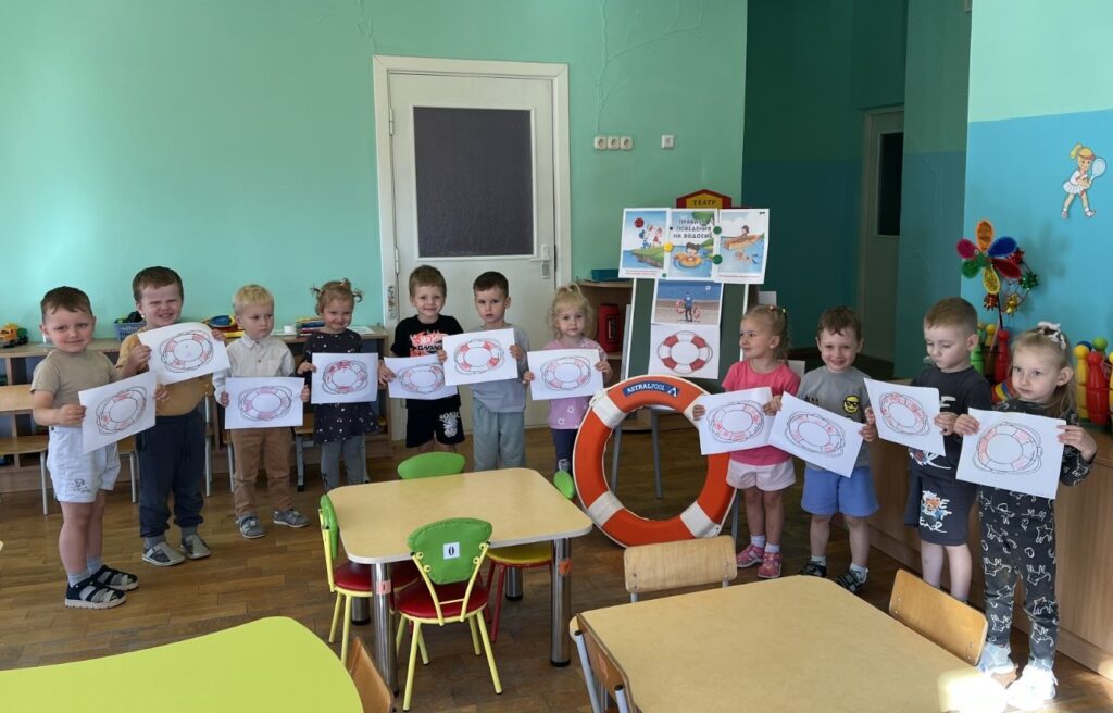 В рамках широкомасштабной профилактической акции «День безопасности на водах» 11 сентября 2025 года в нашем учреждении дошкольного образования проведен ряд тематических мероприятий «Один у воды — не миновать беды». В фойе первого этажа обновлен информационный стенд «Безопасность на воде», в 09.00 проведен флешмоб на тему безопасности у воды с распространением листовок, буклетов. С воспитанниками проведены беседы на тему безопасности на воде «Один у воды – не миновать беды!». Дети рассматривали иллюстрации на тему «Правила поведения возле водоемов», играли в дидактические игры «Правила безопасности: да – нет», «Хорошо – плохо» и др. Дети второй младшей группы рисовали «Спасательный круг». С воспитанниками средней группы проведено тематическое занятие «От беспечности на воде до несчастья — один шаг», а ребята старшей группы решали проблемные ситуации на темы » Чем опасны игры около водоемов?», «Как нужно звать на помощь в опасных ситуациях, возникших на воде?» и др., закрепляли знания безопасного поведения на воде.