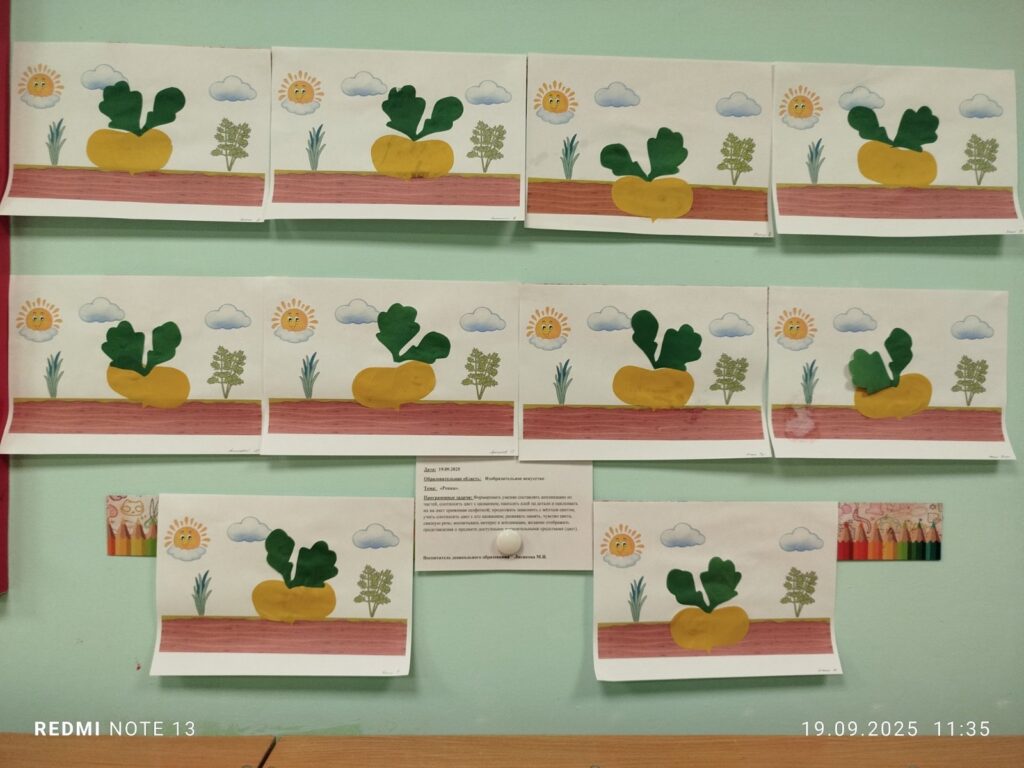 Во второй младшей группе №2 прошло увлекательное занятие по изобразительной деятельности (аппликации) на тему любимой русской народной сказки «Репка». Ребята с удовольствием вспомнили сюжет сказки, рассказали, кто помогал деду вытянуть репку, а также вместе инсценировали сказку, а в беседе проговорили, как важно дружить и помогать друг другу. В ходе занятия воспитанники учились аккуратно работать с бумагой и клеем, развивали внимание, усидчивость и мелкую моторику. Каждая аппликация получилась яркой и неповторимой.