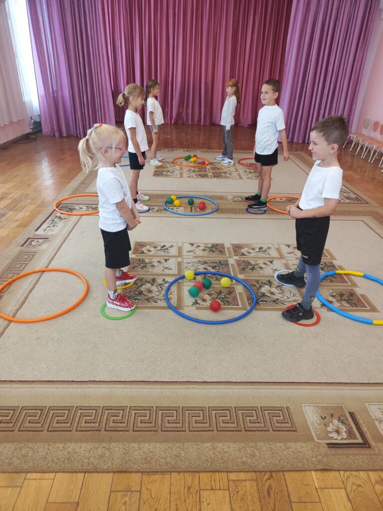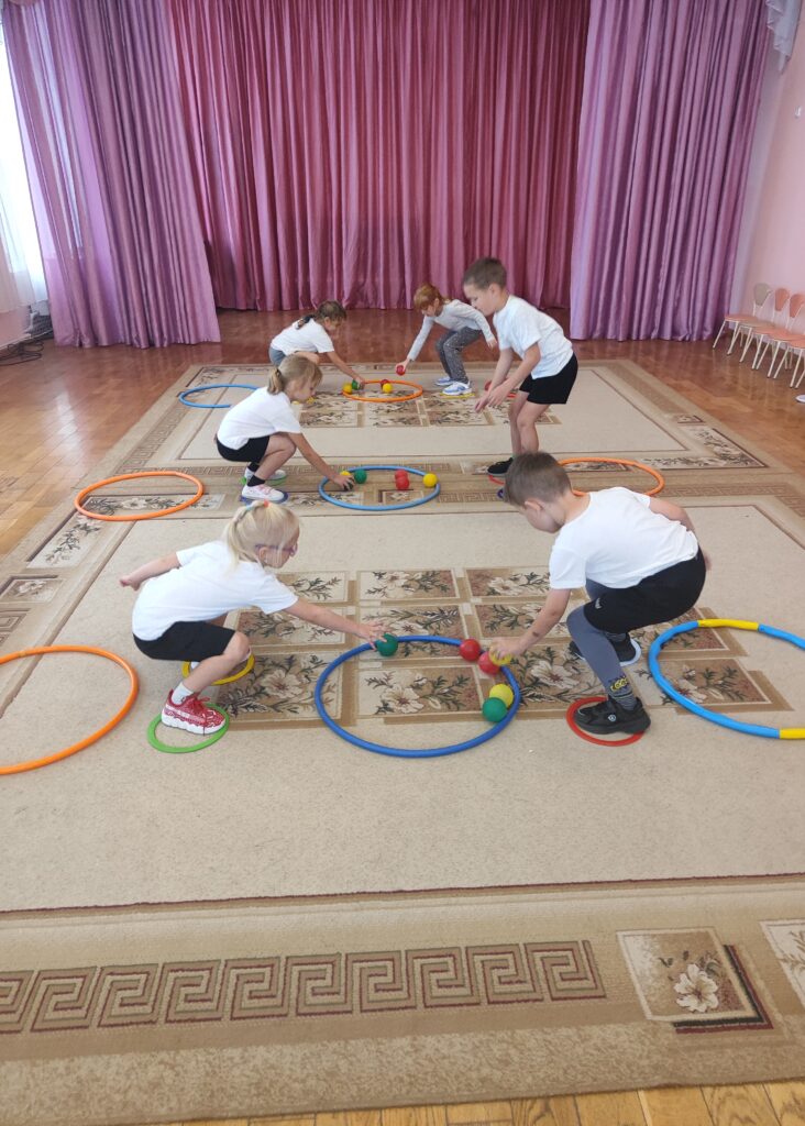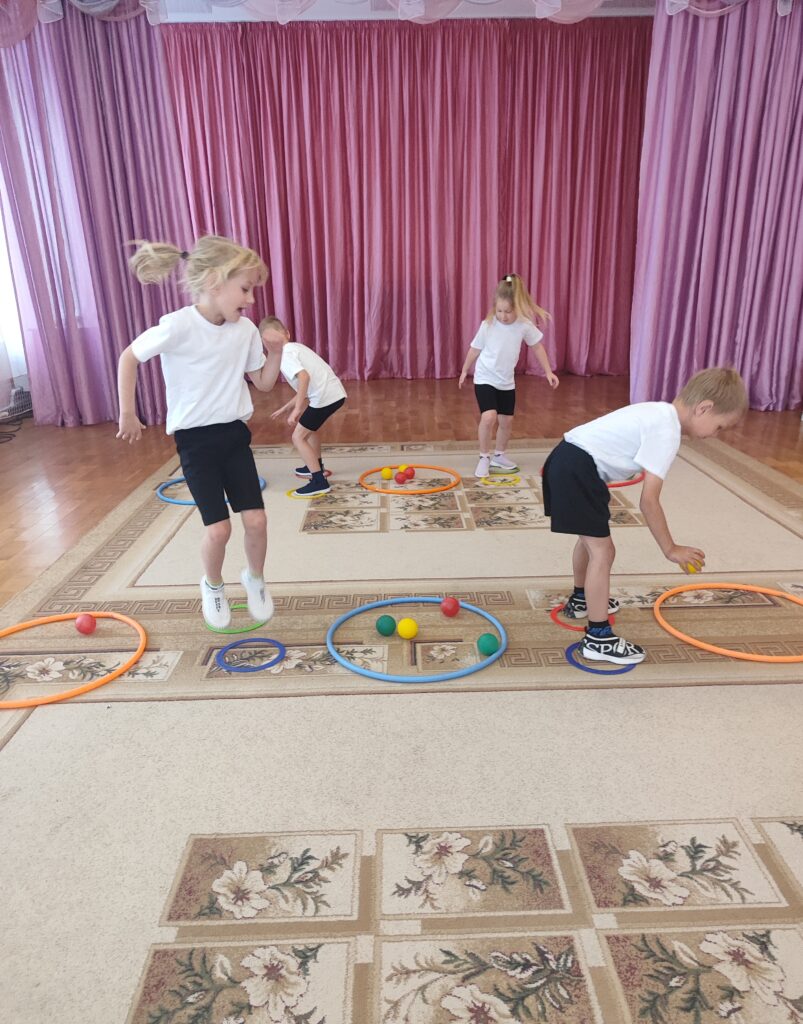 В старшей группе №5 прошло увлекательное занятие по физической культуре. В ходе занятия воспитанники соревновались в парах. Ребятам нужно было найти свой цвет и прыжком переложить на свою сторону, тем самым закрепляли прыжок с поворотом кругом и развивали сенсорные способности. Ребята с радостью выполняли упражнение и уже с нетерпением ждут следующее занятие.