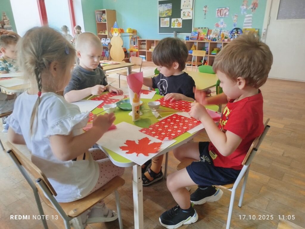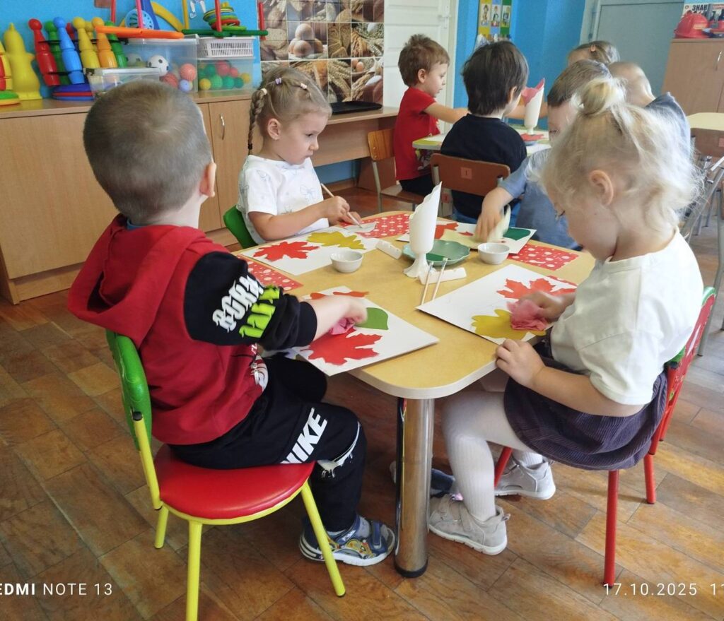 Осень-это прекрасное время года. Деревья наряжаются в яркие наряды из пестрых листьев желтого, оранжевого, красного и зеленого цветов. Воспитанники второй младшей группы №2 на занятии по образовательной области «Изобразительное искусство» передали в осенних листочках всю красоту этой поры года.