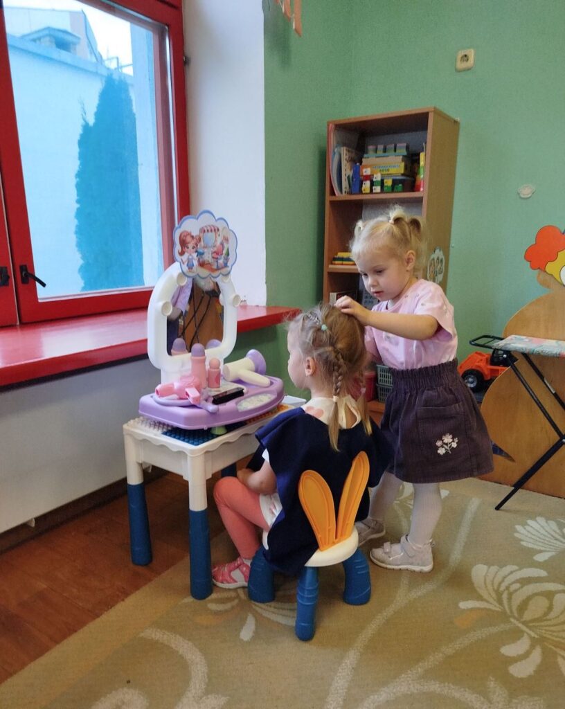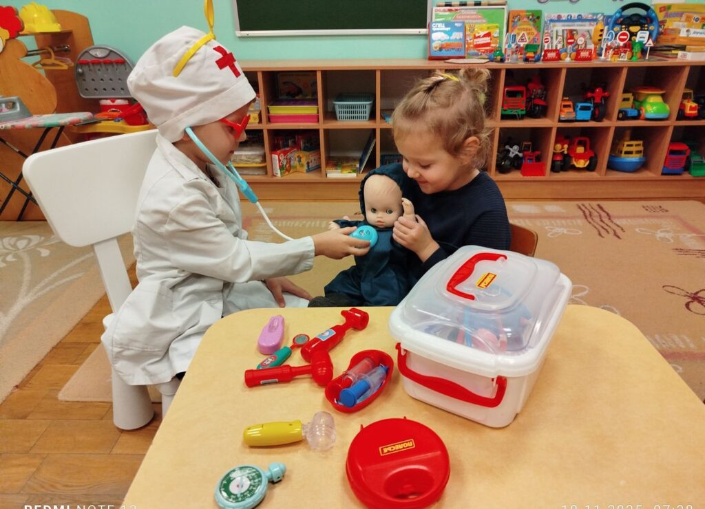 Сюжетно-ролевым играм отведено особое место. В таких играх ребенок развивает речь, навыки коммуникации. В сюжетно-ролевых играх отражаются представления детей об окружающем мире, взаимоотношениях и профессиональных обязанностях людей. Ребёнок переносится из повседневной рутины: примеряет интересную роль, использует образы памяти и фантазию для действия в придуманной ситуации. Сюжетно-ролевая игра является элементом образовательного процесса в детском саду. Воспитанники второй младшей группы №2 только обучаются умению реализовывать игровой замысел. Они охотно соглашаются на предложение взрослого вылечить куклу, напоить куклу чаем, купить продукты, сделать причёску и др.