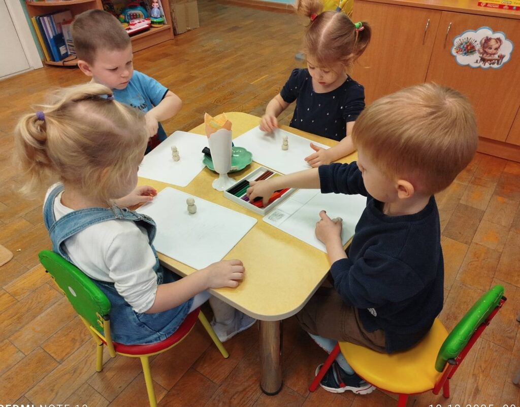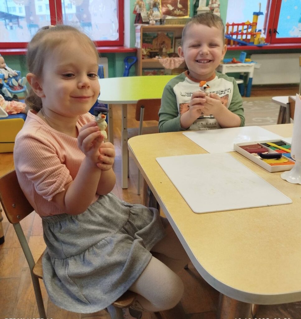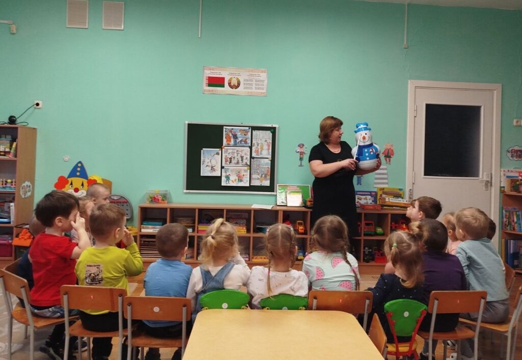 За окном падает снежок, а на занятие к ребятам второй младшей группы № 2 пришел Снеговик. Он рассказал, что очень ждал наступление зимы, т.к. любит играть в снежки, кататься с горки на санках, ходить на лыжах, и самое главное, встречать Новый год. Однако, он грустил, потому что у него не было друзей. Ребята захотели ему помочь и слепили вот таких веселых друзей — Снеговиков.