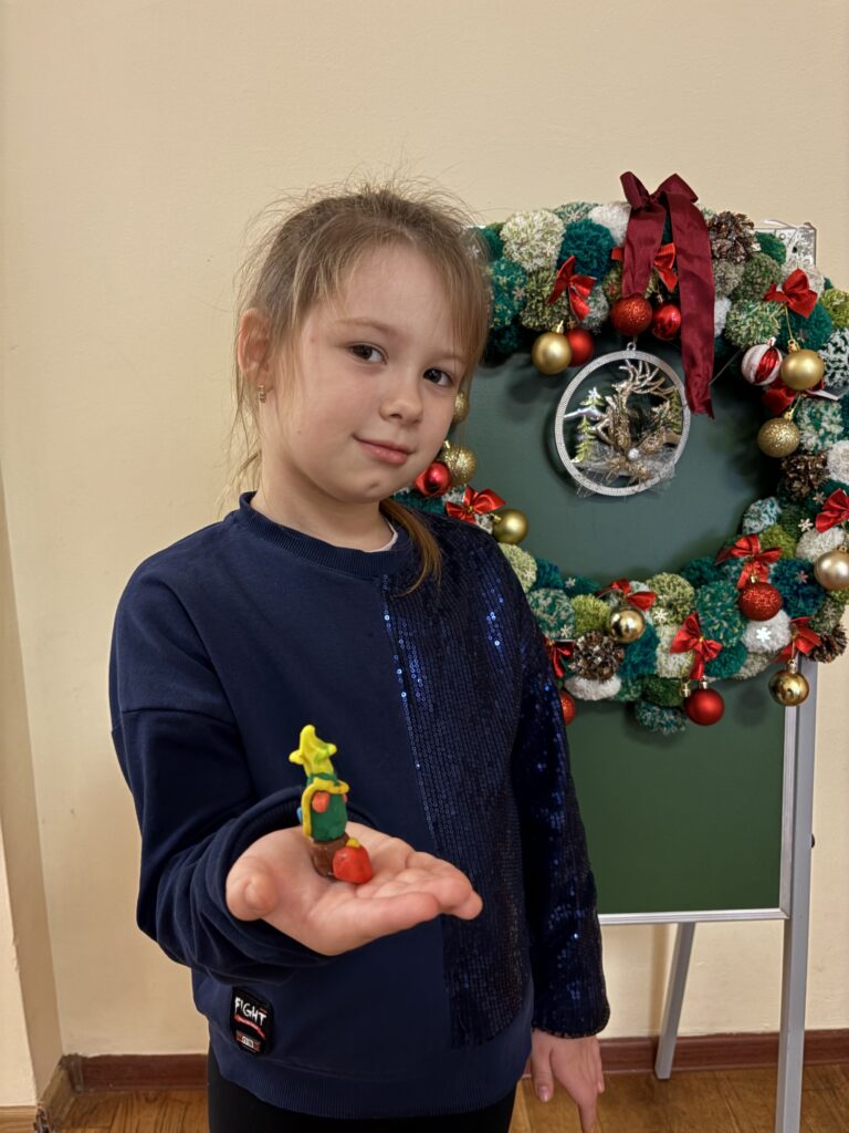 В старшей группе №5 прошло занятие по образовательной области «Изобразительное искусство». Была проведена предварительная беседа о лесе и хвойных деревьях. Воспитанники закрепили знание о строении и особенностях внешнего вида елки (ствол, ветки, вечнозеленые иголки). Вспомнили новогоднюю елку, поговорили о том, как она бывает украшена. Подчеркнули разнообразие елочных украшений. В конце занятия воспитанники проявили свои творческие способности и слепили из пластилина новогодних красавиц.