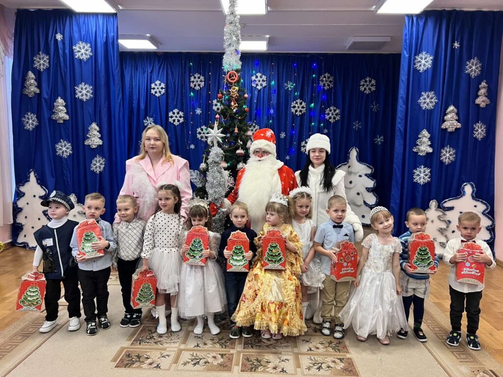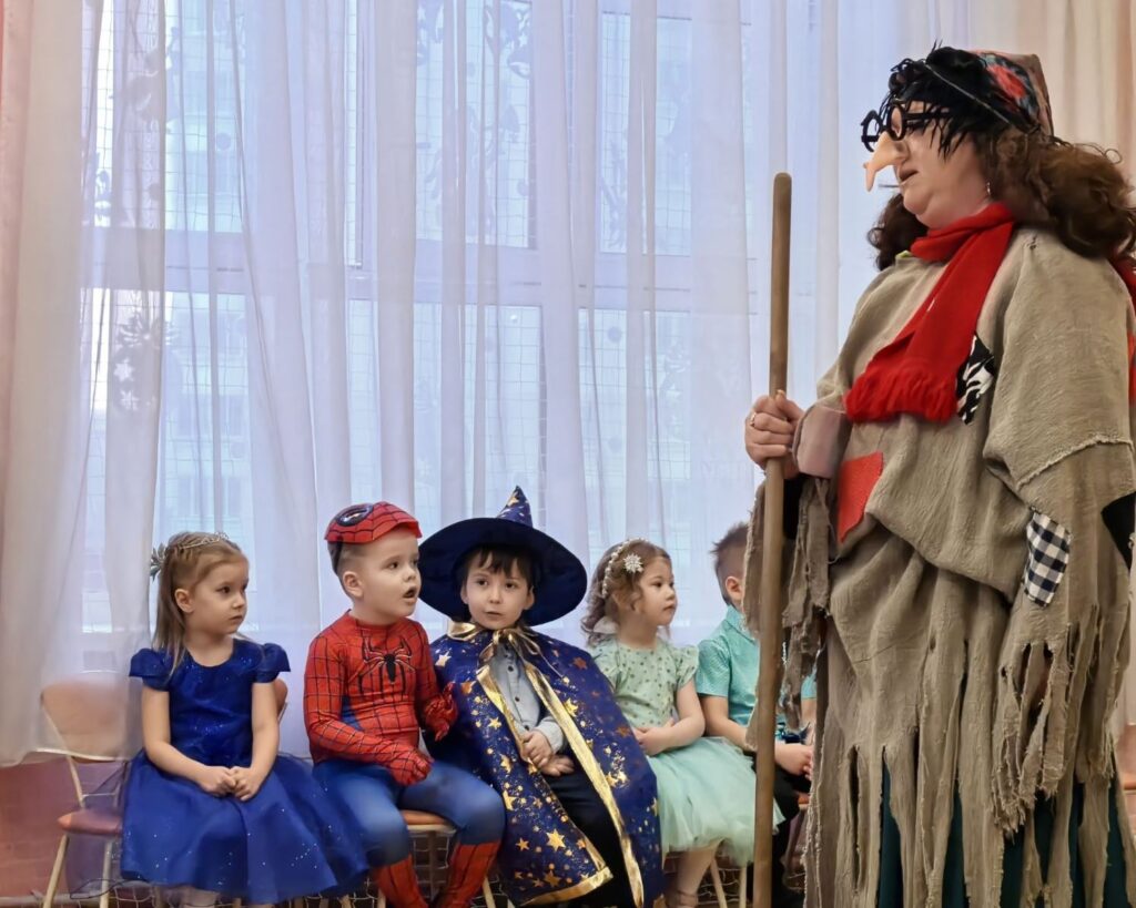 На праздник к ребятам пришел забавный и немного неуклюжий Снеговик, который вовлёк всех в весёлые игры и затеи. А самой неожиданной гостьей стала озорная Баба Яга. Вместо того чтобы пакостить, лесная волшебница решила повеселиться вместе с детьми — загадывала смешные загадки, проверяла их на ловкость и даже попыталась «переманить» мешок с подарками, но, конечно, безуспешно.