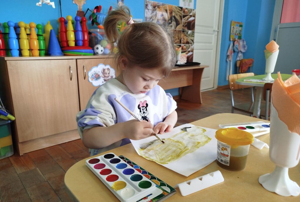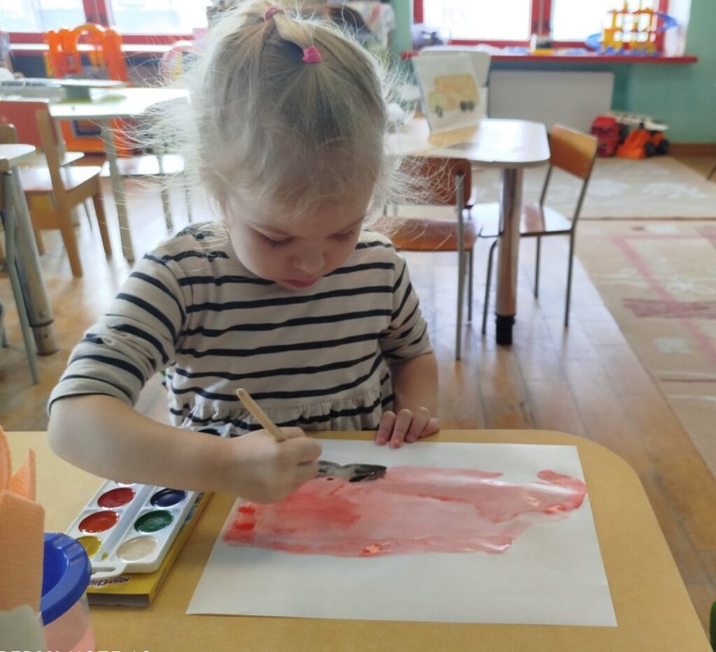 Во второй младшей группе №2 прошло занятие по образовательной области изобразительное искусство (рисование) «Автобус», которое направлено на формирование умения изображать предмет из прямоугольных форм, развитие мелкой моторики и чувства цвета. Воспитанники развивали умения закрашивать пространство, не выходя за контур, рисовать вертикальные/горизонтальные линии. Закрепили знания о транспорте. На занятии ребята отгадывали загадки про транспорт, рассмотрели игрушечный автобус, а в конце занятия любовались своим творчеством.