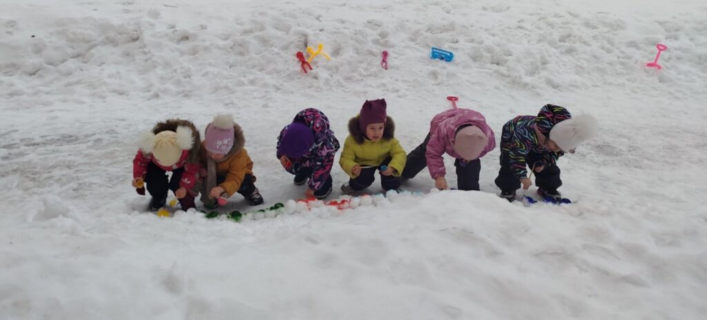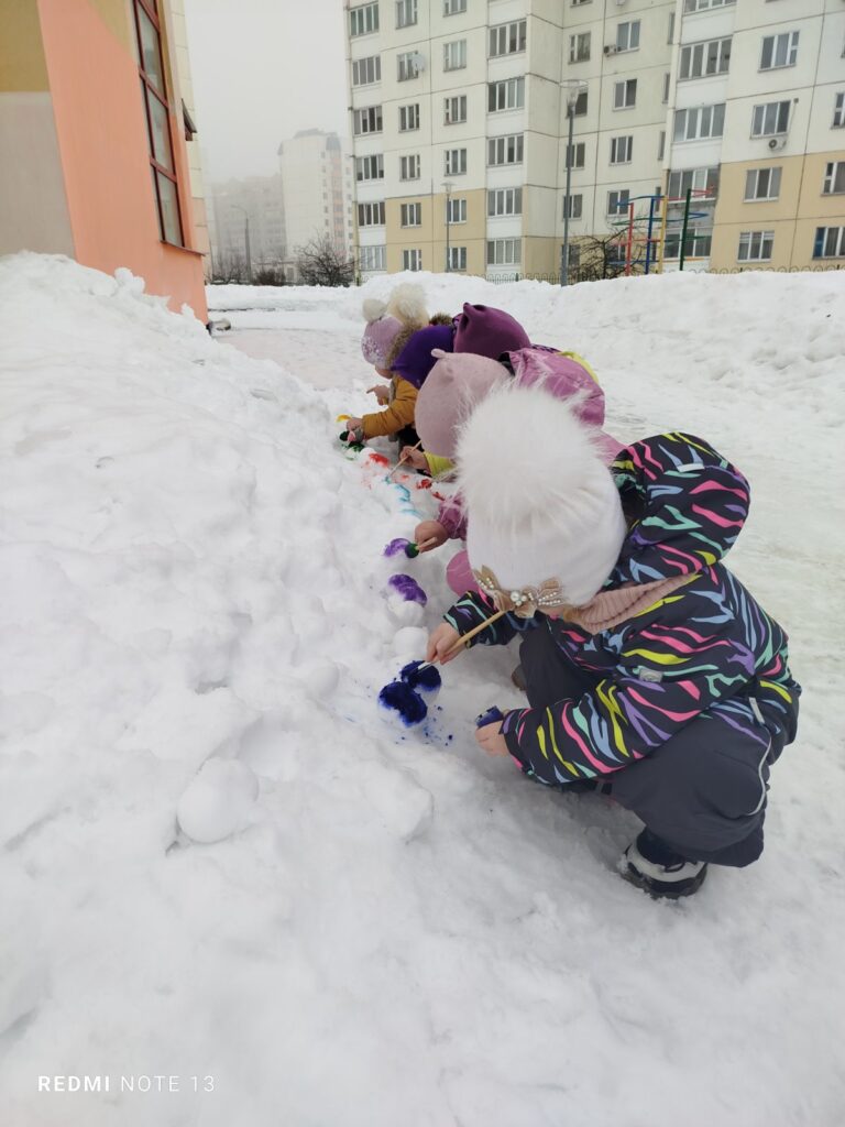 Рисовать на снегу — это большее удовольствие, чем рисовать карандашами или красками на бумаге, потому что это новое, неожиданное и увлекательное занятие. Воспитанники второй младшей группы №2 проявили свою самостоятельность и фантазию. Ребята с помощью снежколепов слепили бусы, а затем их раскрасили. Ребята получили огромное удовольствие, положительные эмоции.