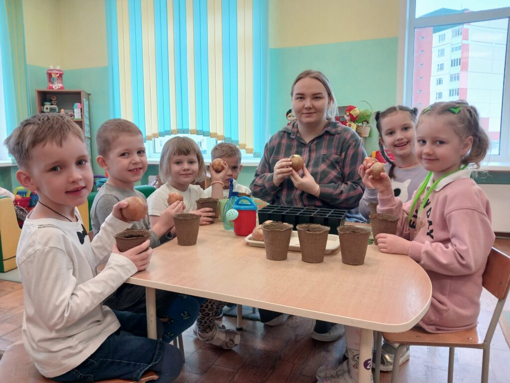 Сегодня воспитанники средней группы примерили на себя роль юных аграриев — ребята дружно посадили лук!