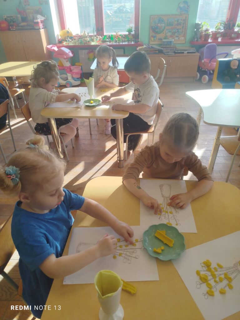 18 марта во второй младшей группе №2 прошло занятие по образовательной области изобразительное искусство в нетрадиционной технике пластилинография «Веточка вербы». Дети закрепили знания о весне, её характерных признаках. Закрепили разные приёмы работы с пластилином (скатывать пластилин в жгутики и небольшие комочки). Научились изображать веточку вербы, передавая её характерные особенности.