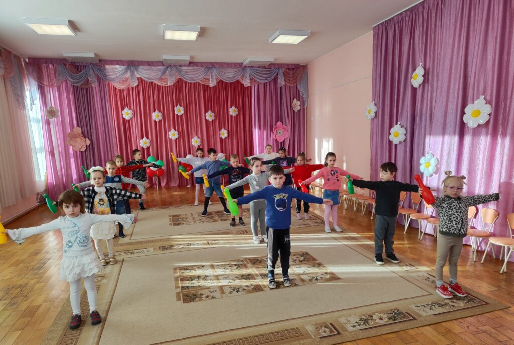 Любой день в детском саду начинается с утренней гимнастики. Утренняя гимнастика является ценным средством оздоровления и воспитания детей. У систематически занимающихся, утренней гимнастикой пропадает сонливое состояние, появляется чувство бодрости, наступает эмоциональный подъем, повышается работоспособность. Чтобы занятия были интересными, а главное – полезными, используется разнообразные формы физических упражнений с предметами. Использование атрибута, в первую очередь, способствует комплексному физическому воспитанию. У детей развивается зрительное восприятие, пространственная ориентировка, координация движений, мелкая моторика. У наших воспитанников утро начинается ярко и весело.